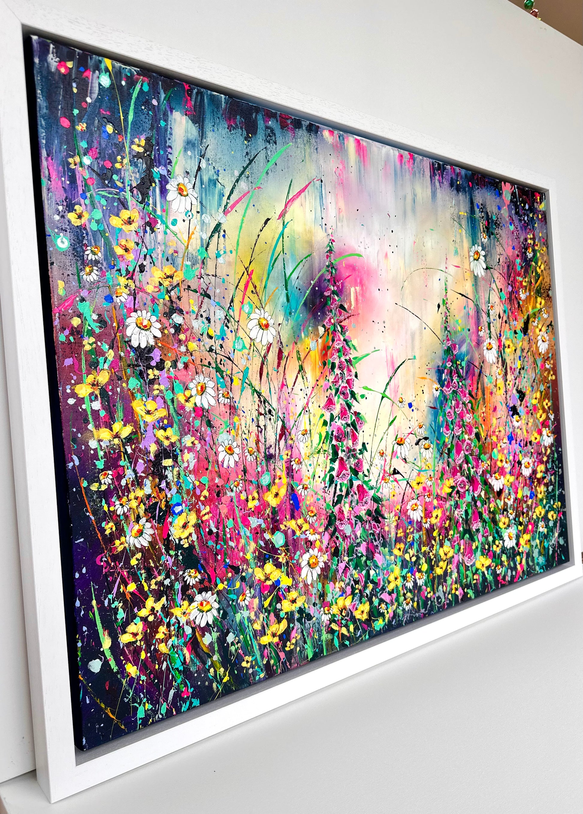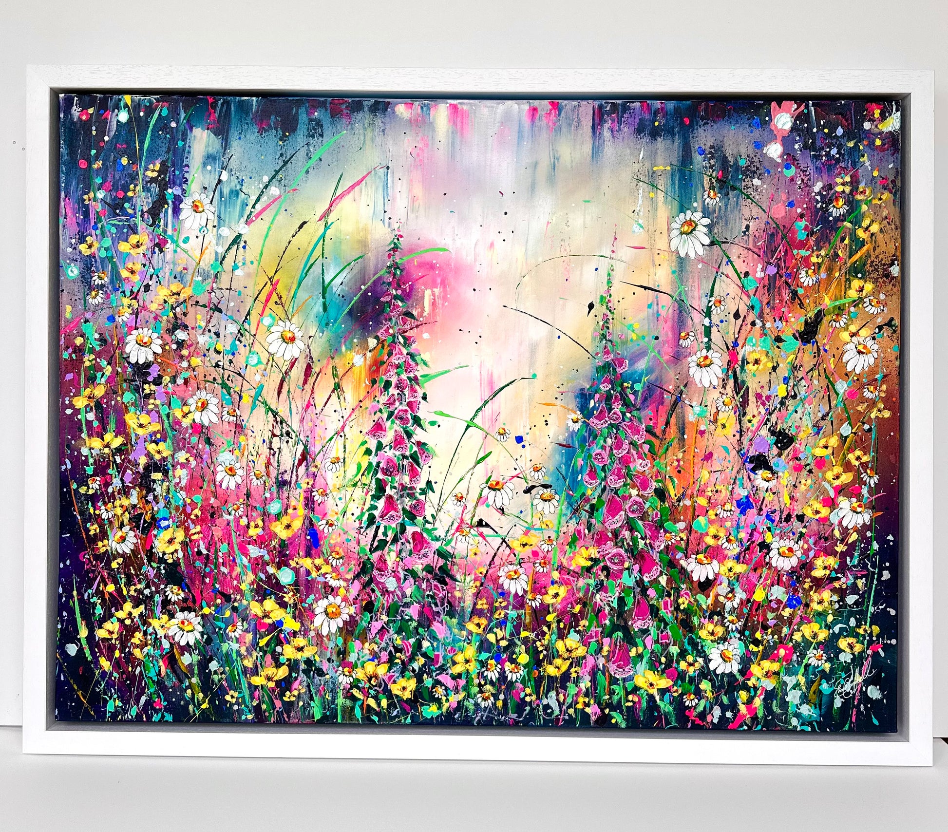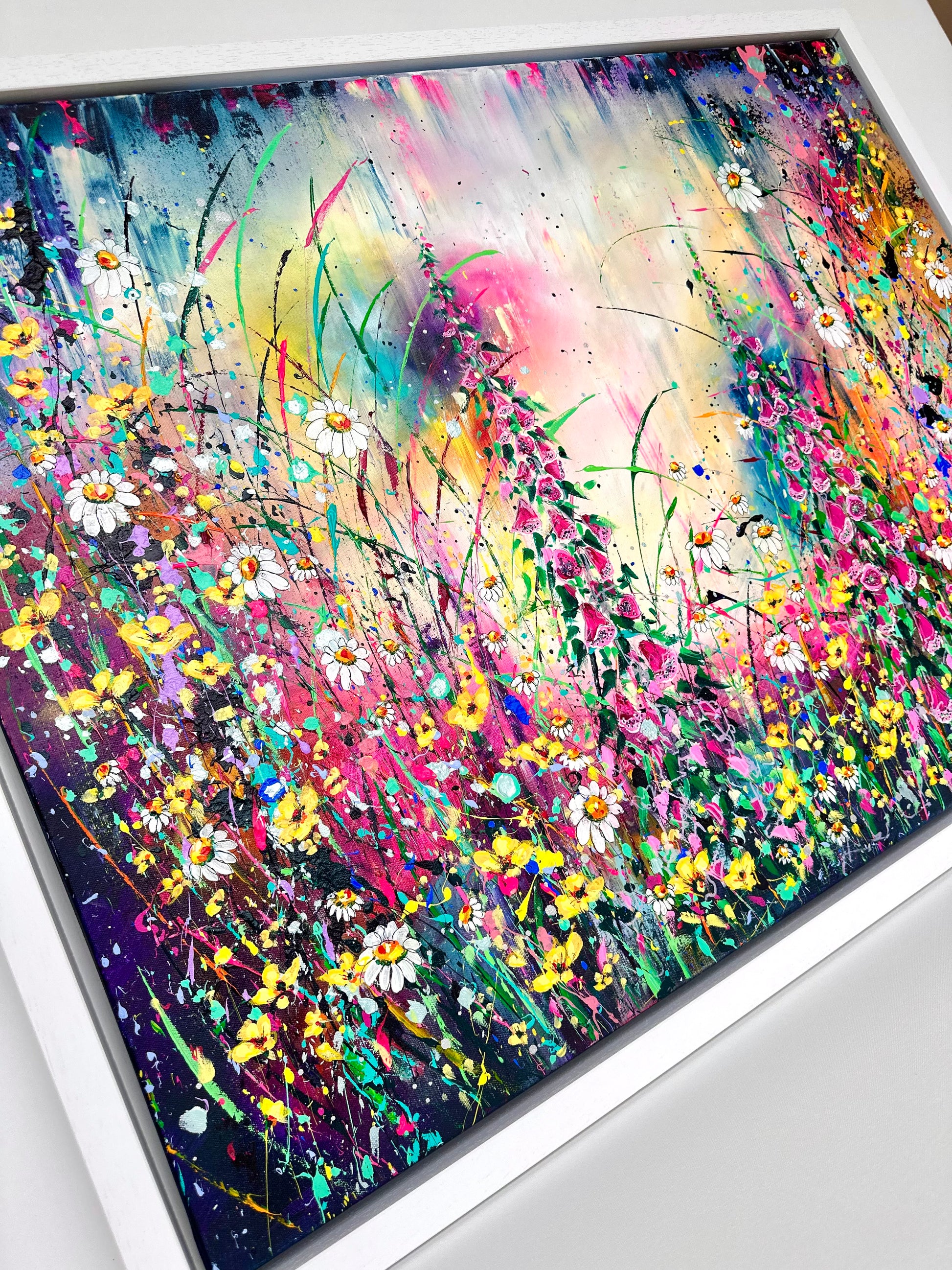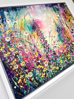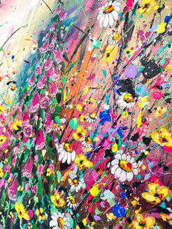 ‘Foxgloves and Buttercups' is a new original acrylic painting on canvas from my wildflower Collection. Foxgloves and Buttercups, a pair that are often found together in a wild flower meadow. Both fill me with smiles and reminiscent memories of when I was young, venturing through fields and collecting bundles of joy to bring home and draw. The painting is hand signed, varnished and prepared for hanging. It is supplied with a certificate of authenticity, measuring a total 85cm x 111cm on deep edge canvas floated and framed.
