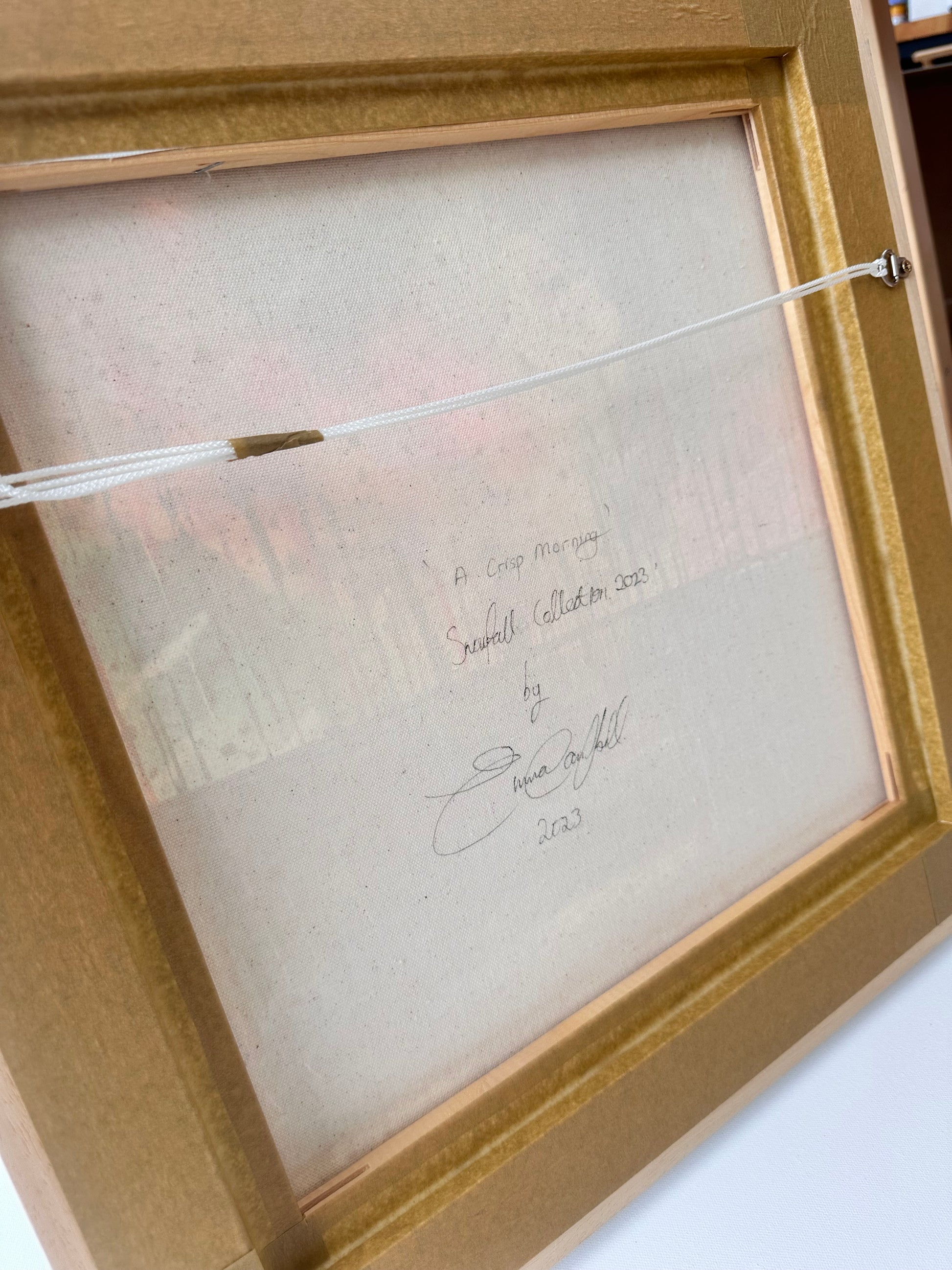 ‘A Crisp Morning' is a new original acrylic painting on canvas from my contemporary Snowfall Collection. The painting is signed, varnished, prepared for hanging and supplied with a certificate of authenticity, measuring a total 49cm x 49cm Floated and Framed.