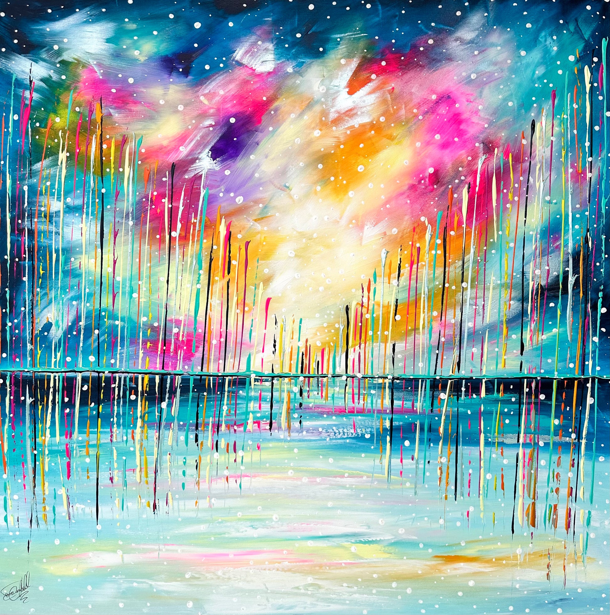 ‘Twilight Snowfall' is a new original acrylic painting on canvas from my contemporary Snowfall Collection. The painting is signed, varnished, prepared for hanging and supplied with a certificate of authenticity, measuring a total 89cm x 89cm Floated and Framed.