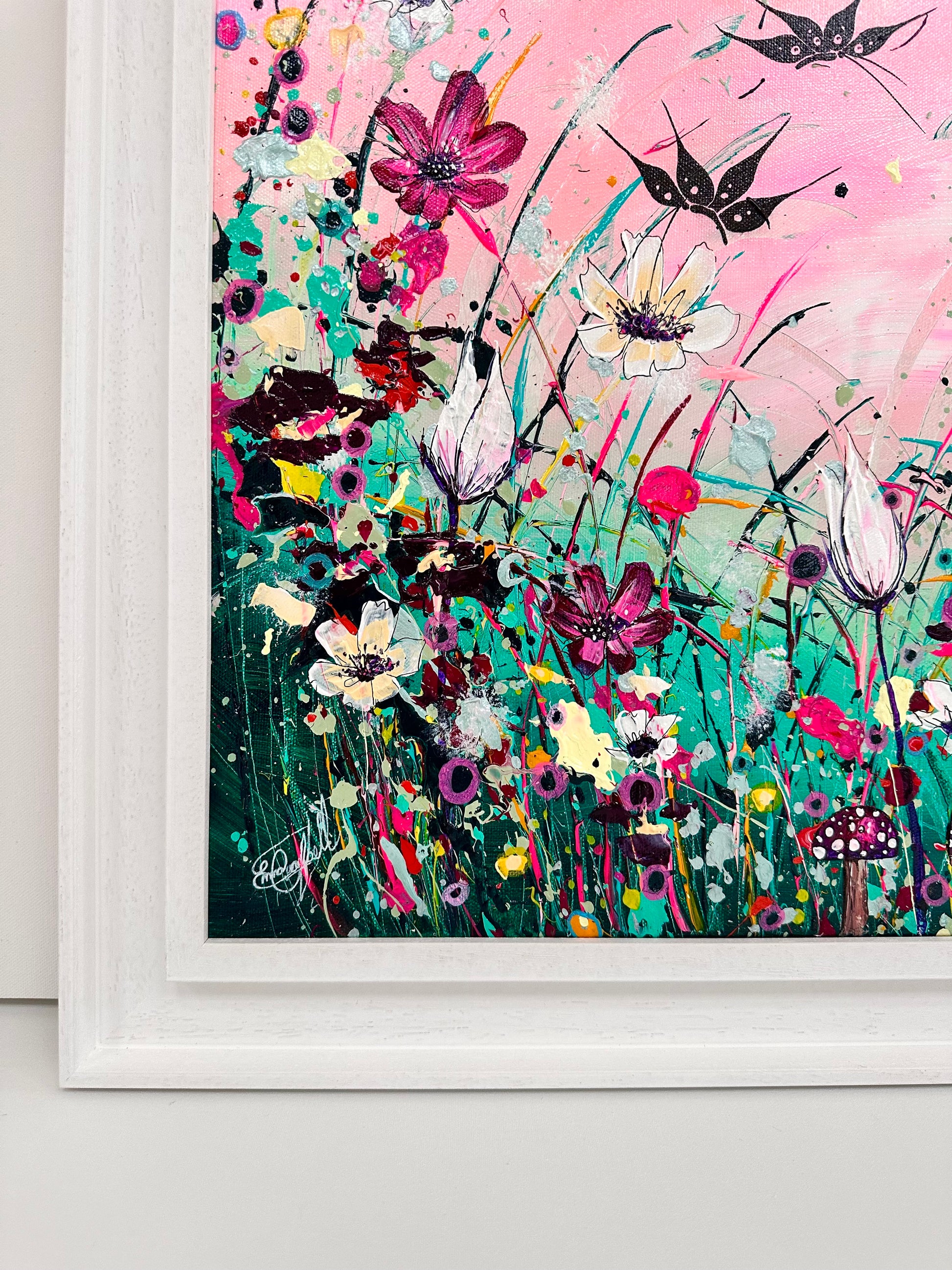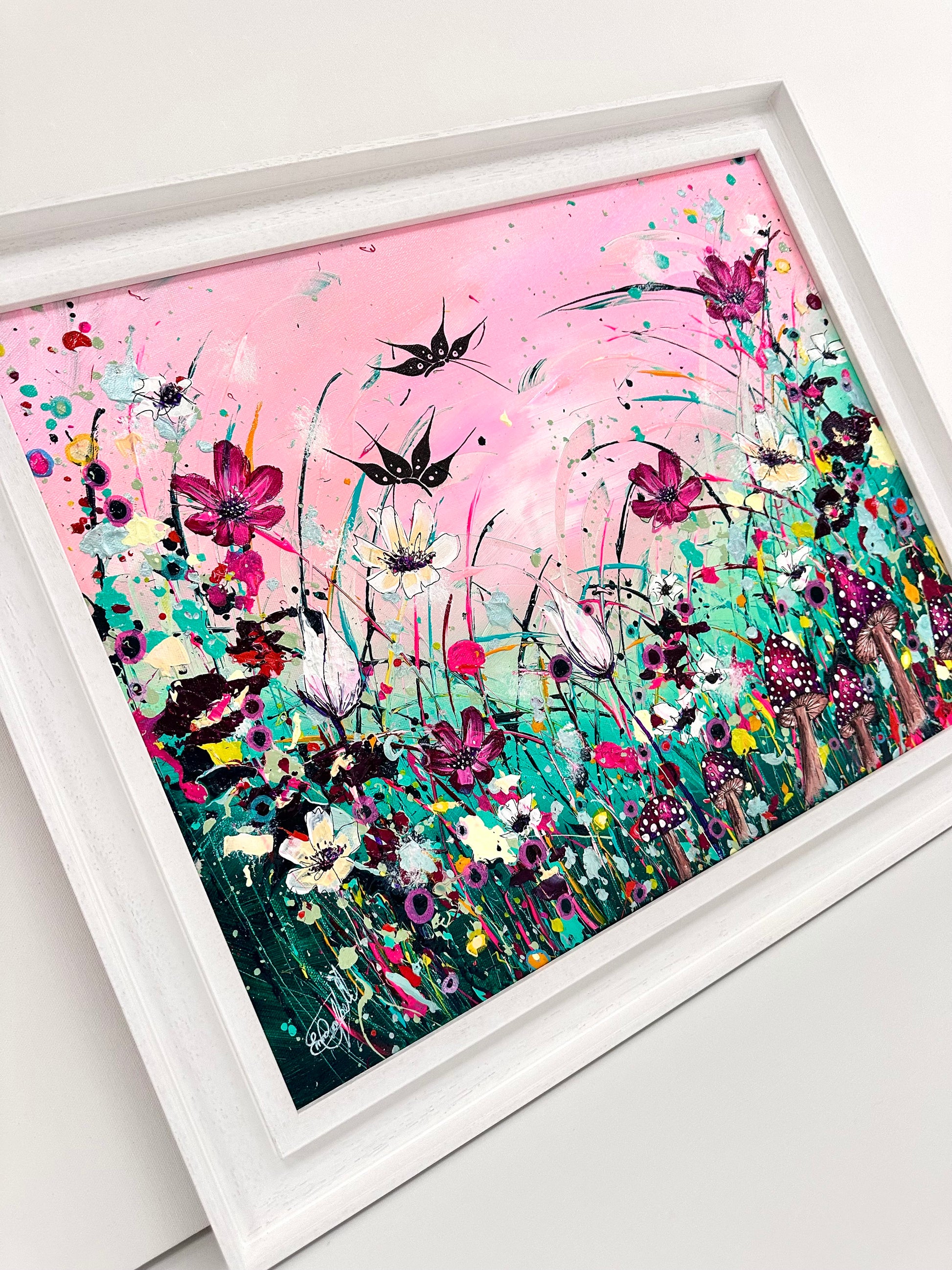‘Bloom and Grow' is a new original acrylic painting on canvas from my Butterfly Collection. This Painting is hand signed, varnished and prepared for hanging. It is supplied with a certificate of authenticity, measuring a total 49cm x 59cm on edge canvas floated and framed.